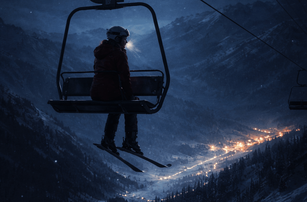 Asseguda al telecadira, li pengen les cames i mira l’abisme. Hi ha una gran distància entre ella i la neu. Sent un soroll mecànic i la cadira s’atura en sec. El vaivé és fort i de cop recorda la sensació d’alguna atracció de fira. Però la Clara està en un telecadira i no té cobertura, ni senyal, i tampoc hi ha ningú. I si el personal de pista ja ha plegat sense adonar-se que ella estava en trànsit pujant la muntanya? Sí, han plegat.